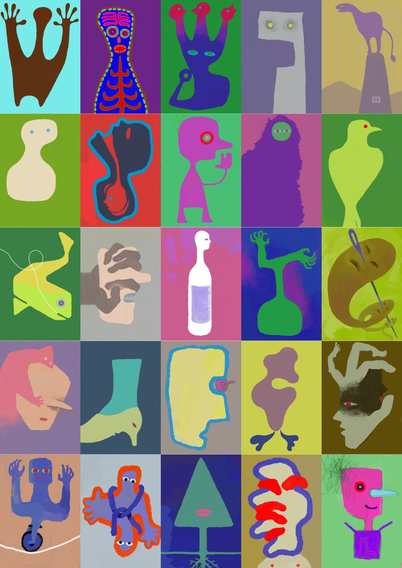 情報伝達表現の可能性を探ることを目的とした自主制作シリーズ。 膨大な試作群を描き溜め、製本して記録している。